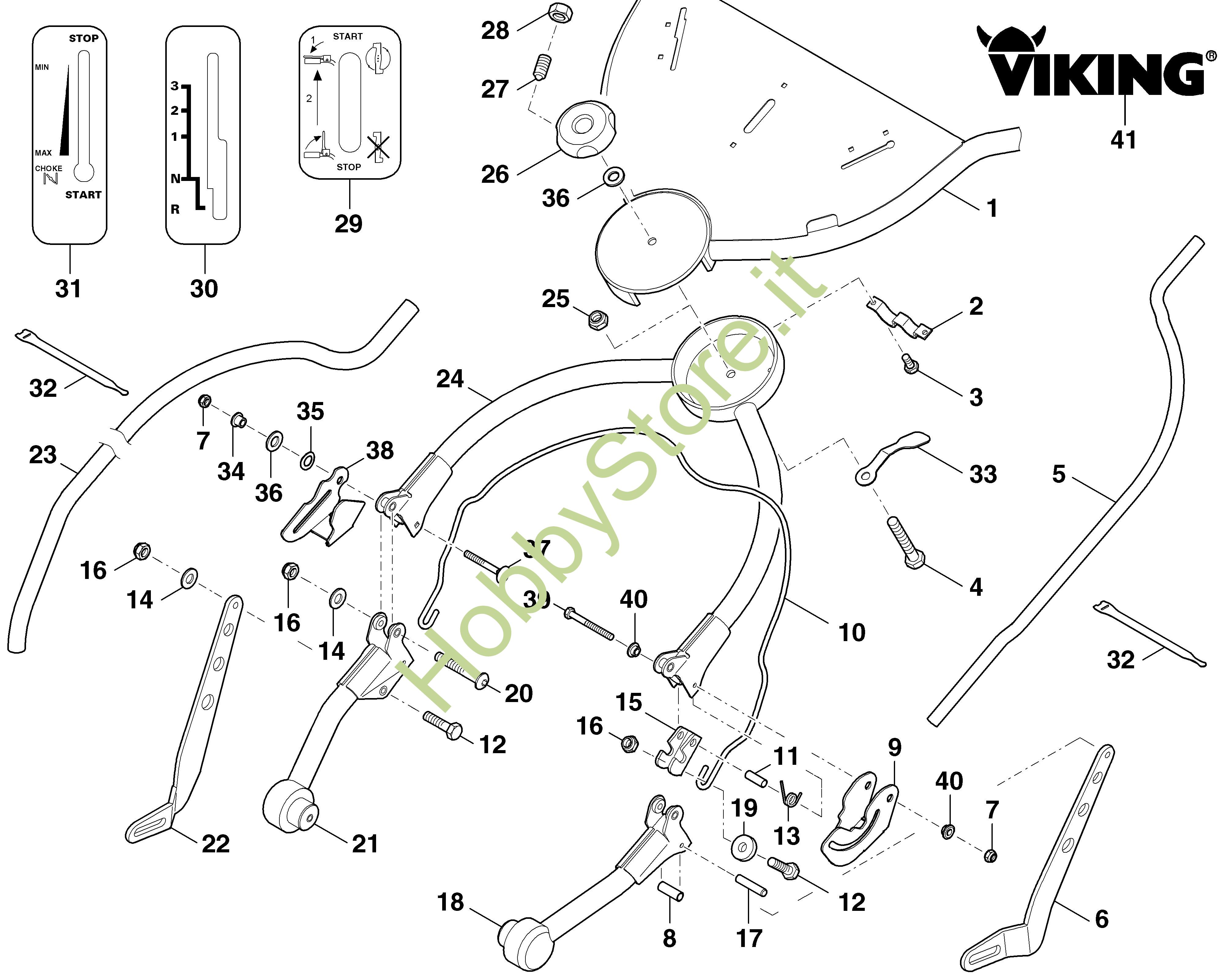 ricambio originale Parte superiore del manubrio MB MB 858.0 Viking Contiene anche i ricambi nr. da 29 a 31 e 41