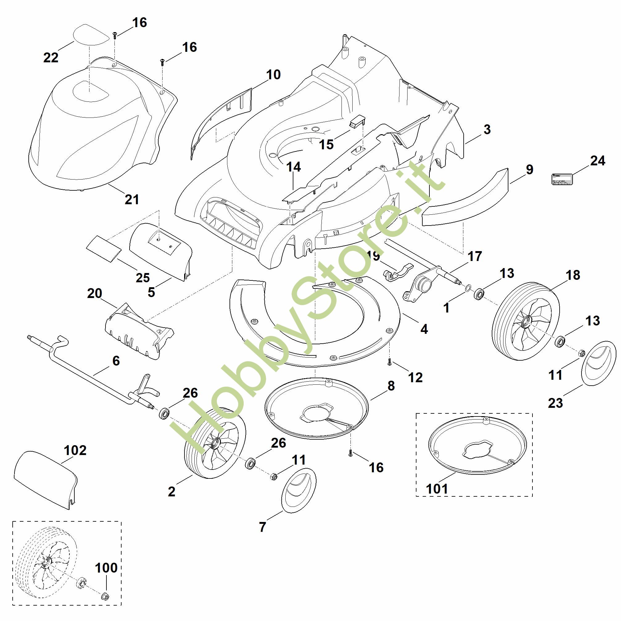 ATTENZIONE: Se nella lista sotto non compaiono i relativi ricambi riportati nell'esploso