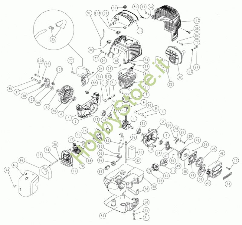Ricambio 999 Gr. salterelli cpl Motore C5SC 52cc B prodotto dal 30/06/2021 al 22/08/2022 SC605B della marca CIFARELLI Contiene anche i ricambi dal 4 al28