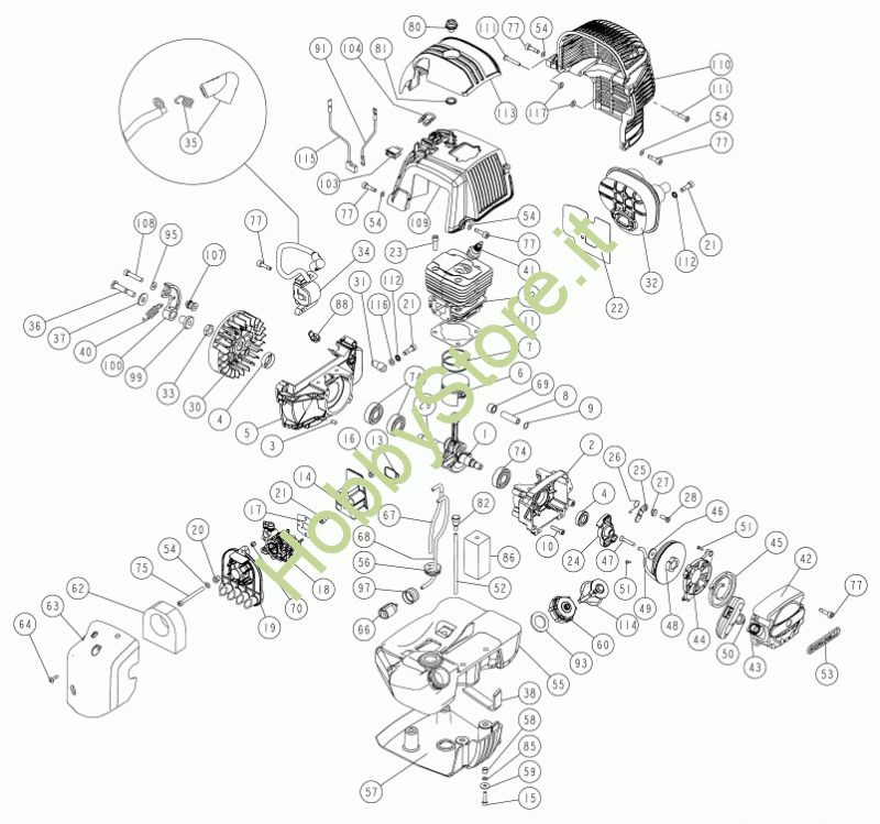Ricambio 35 Kit molla + pipetta cavo bobina Motore C5SC 52cc Eur5 prodotto dal 31/07/2020 SC605SEU della marca CIFARELLI