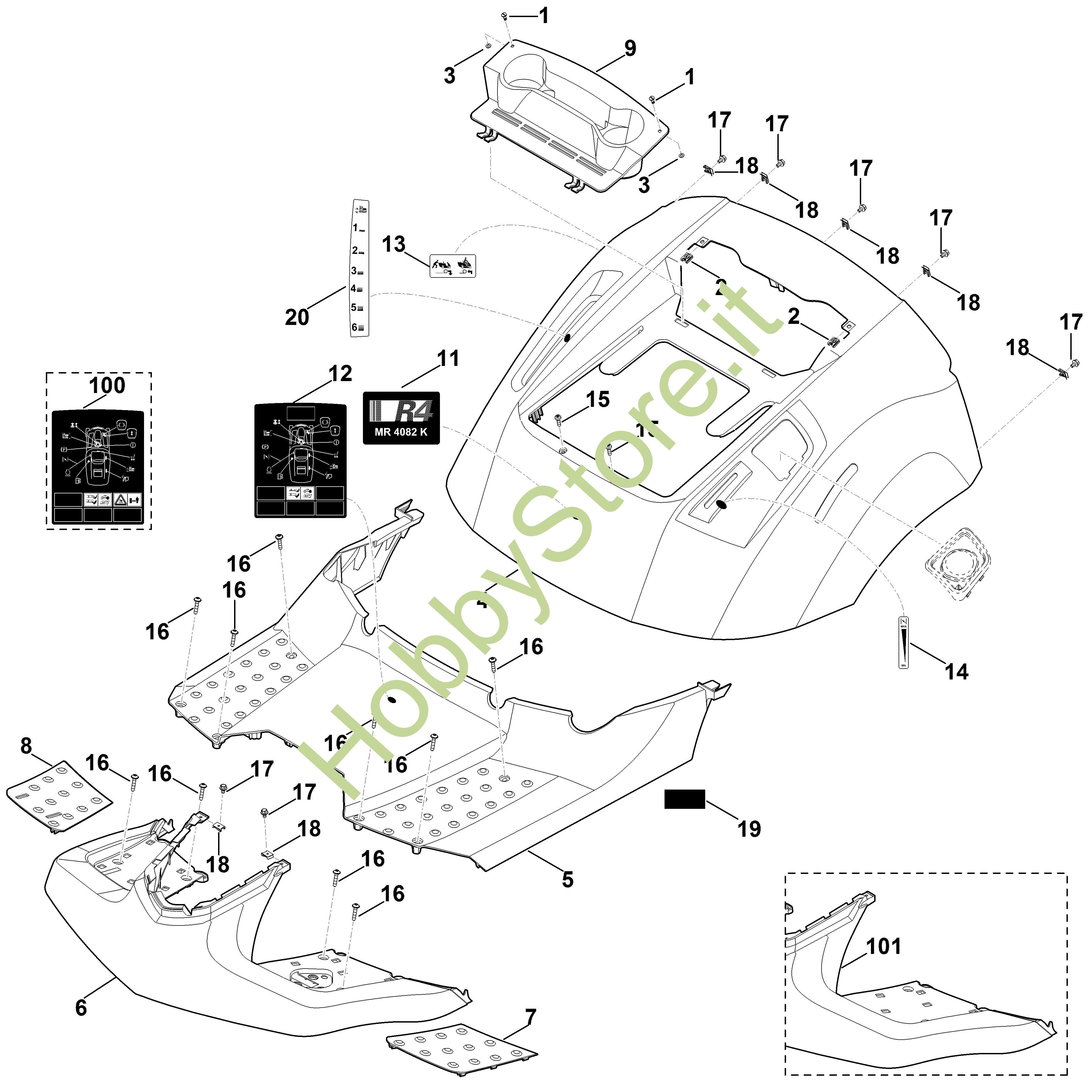 ATTENZIONE: Se nella lista sotto non compaiono i relativi ricambi riportati nell'esploso