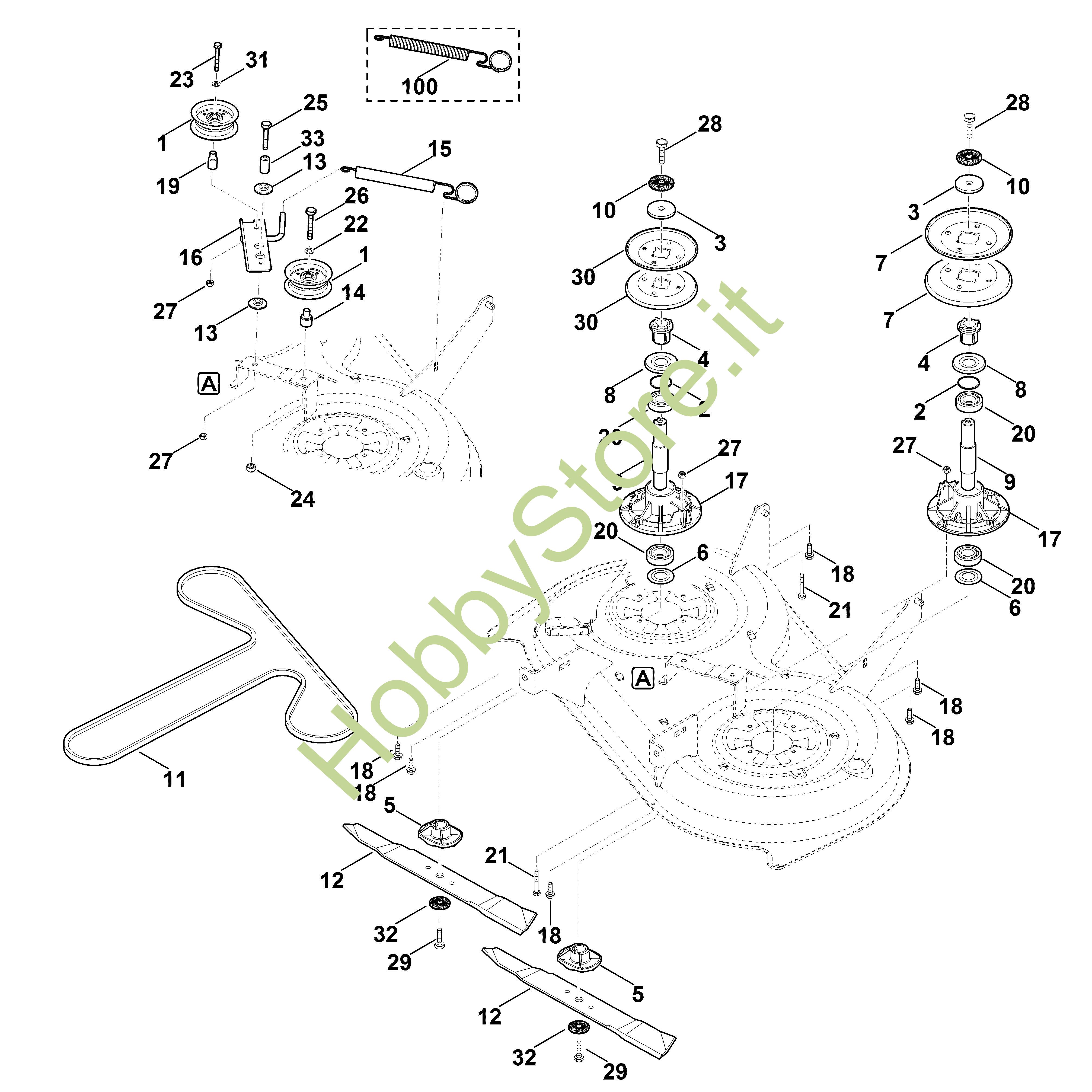 ricambio originale Albero lama compl. MT MT 4097.0 S Viking Contiene anche i ricambi nr. da 2 a 4,8 a 10,17,20,28,30