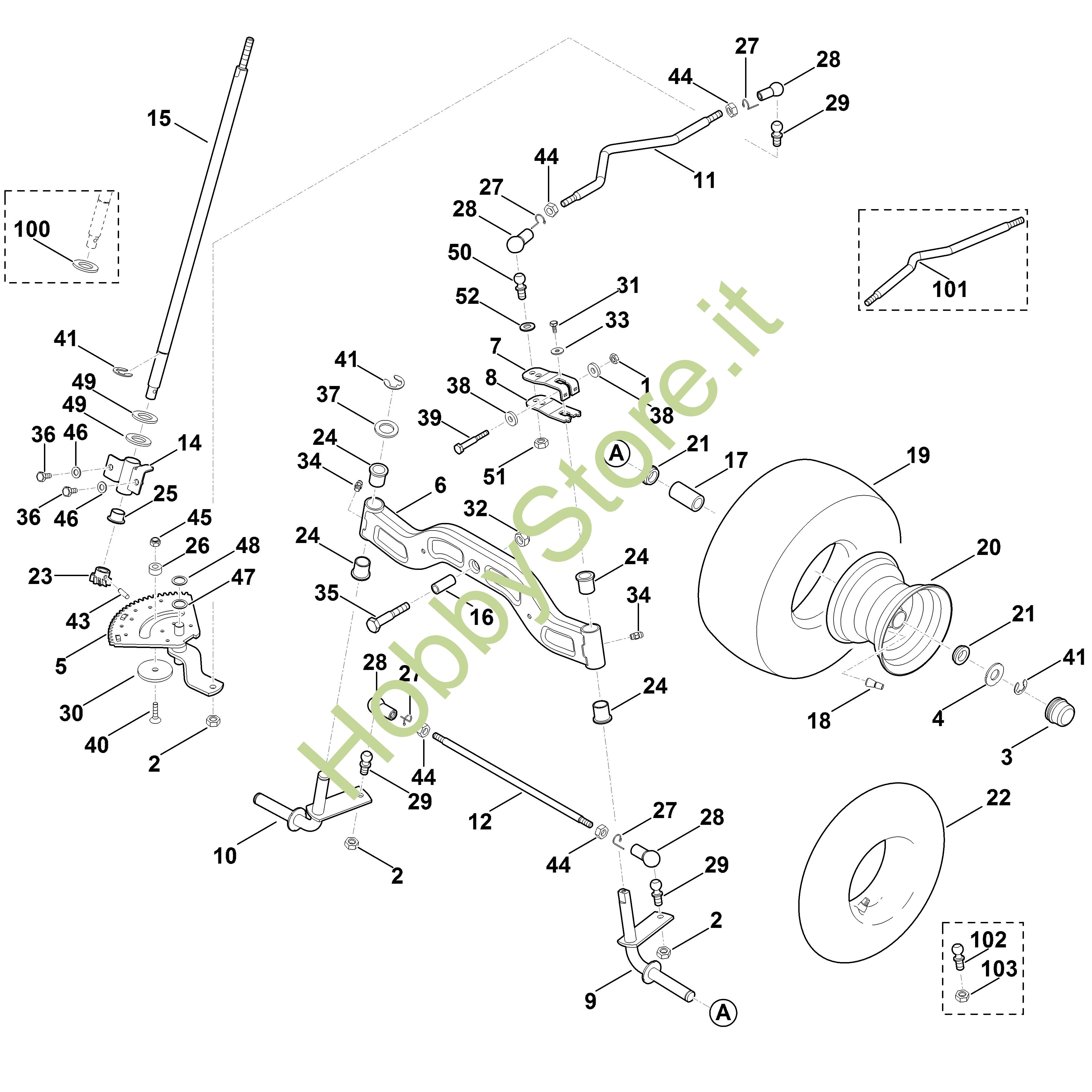ricambio originale Asse compl. MT MT 5097.0 K Viking Contiene anche i ricambi n. 24 e 34