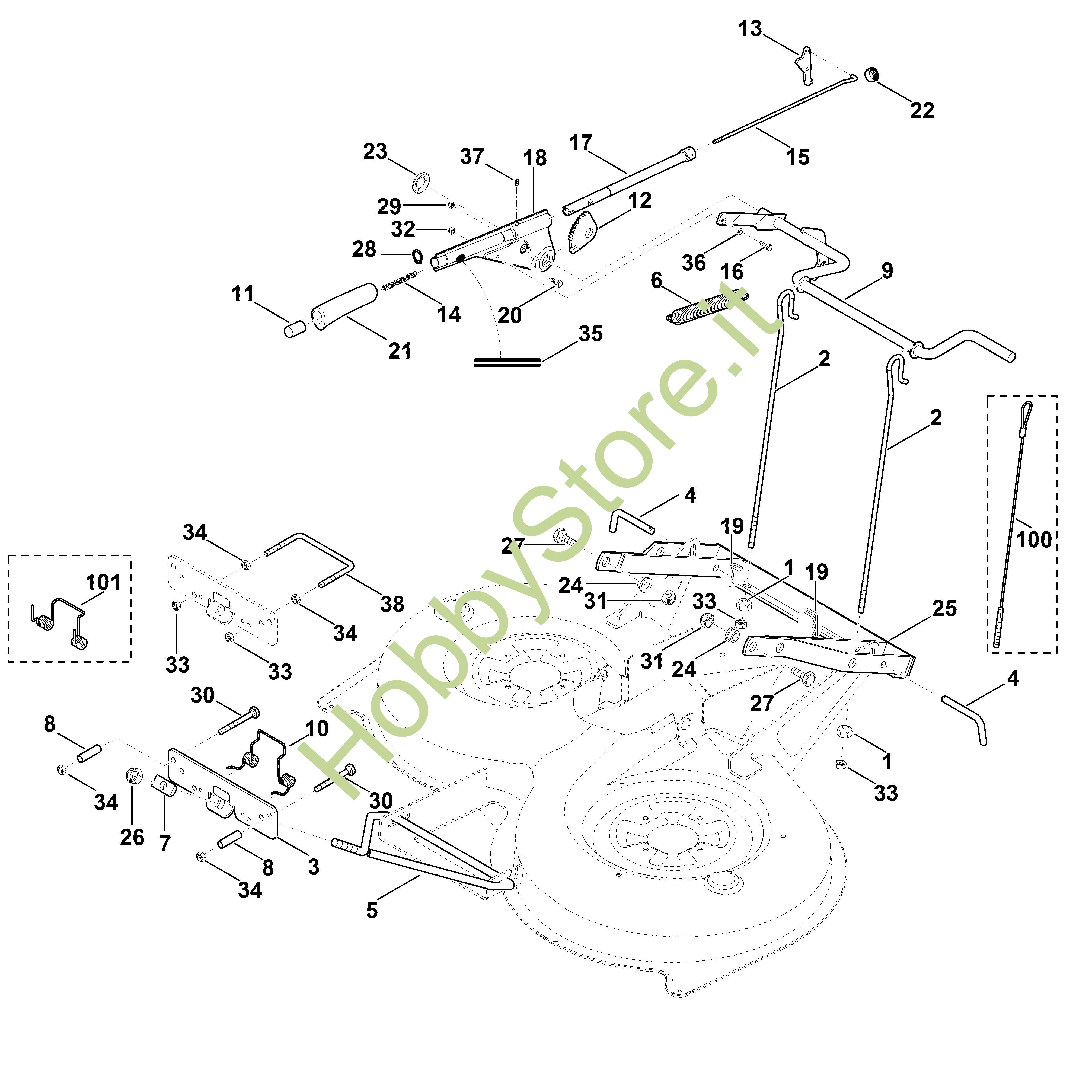 ricambio originale Leva di regolazione compl. MT MT 5097.0 K Viking Contiene anche i ricambi nr. da 11 a 18,20 a 22,28,29,32,35 a 37