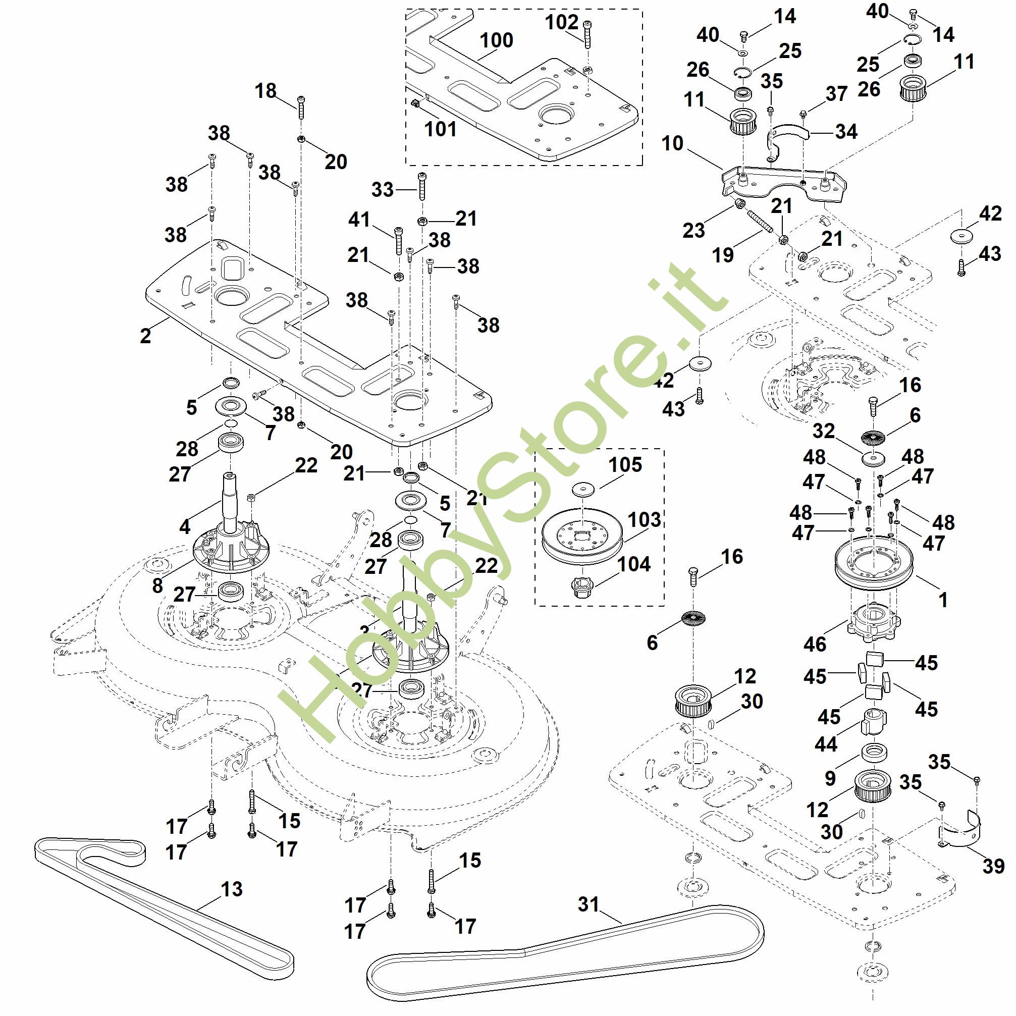 ricambio originale Albero lama destro compl. MT MT 5112.1 Z Viking Contiene anche i ricambi nr. da 4 a 8,12,16,27,28,32