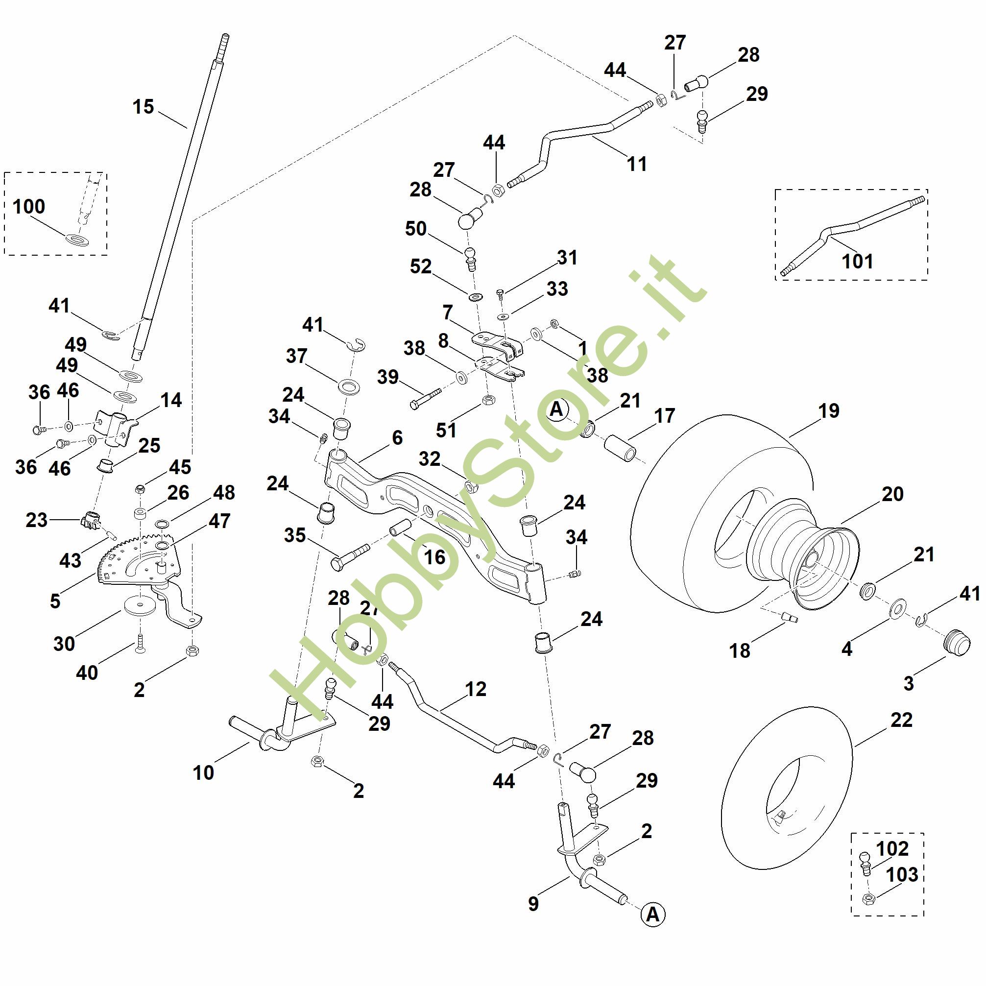 ricambio originale Asse compl. MT MT 6112.0 C Viking Contiene anche i ricambi n. 24 e 34