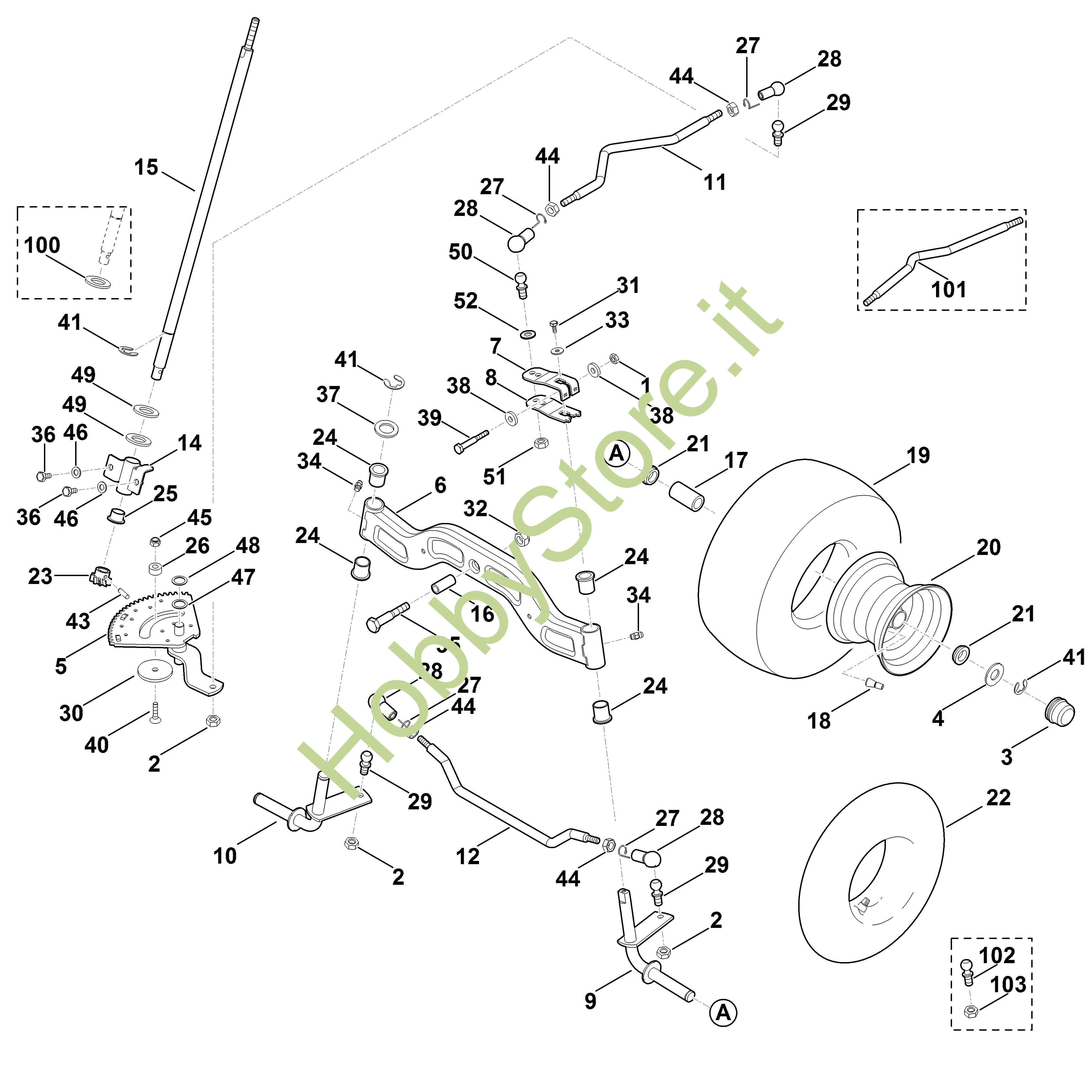 ricambio originale Asse compl. MT MT 6112.0 ZL Viking Contiene anche i ricambi n. 24 e 34