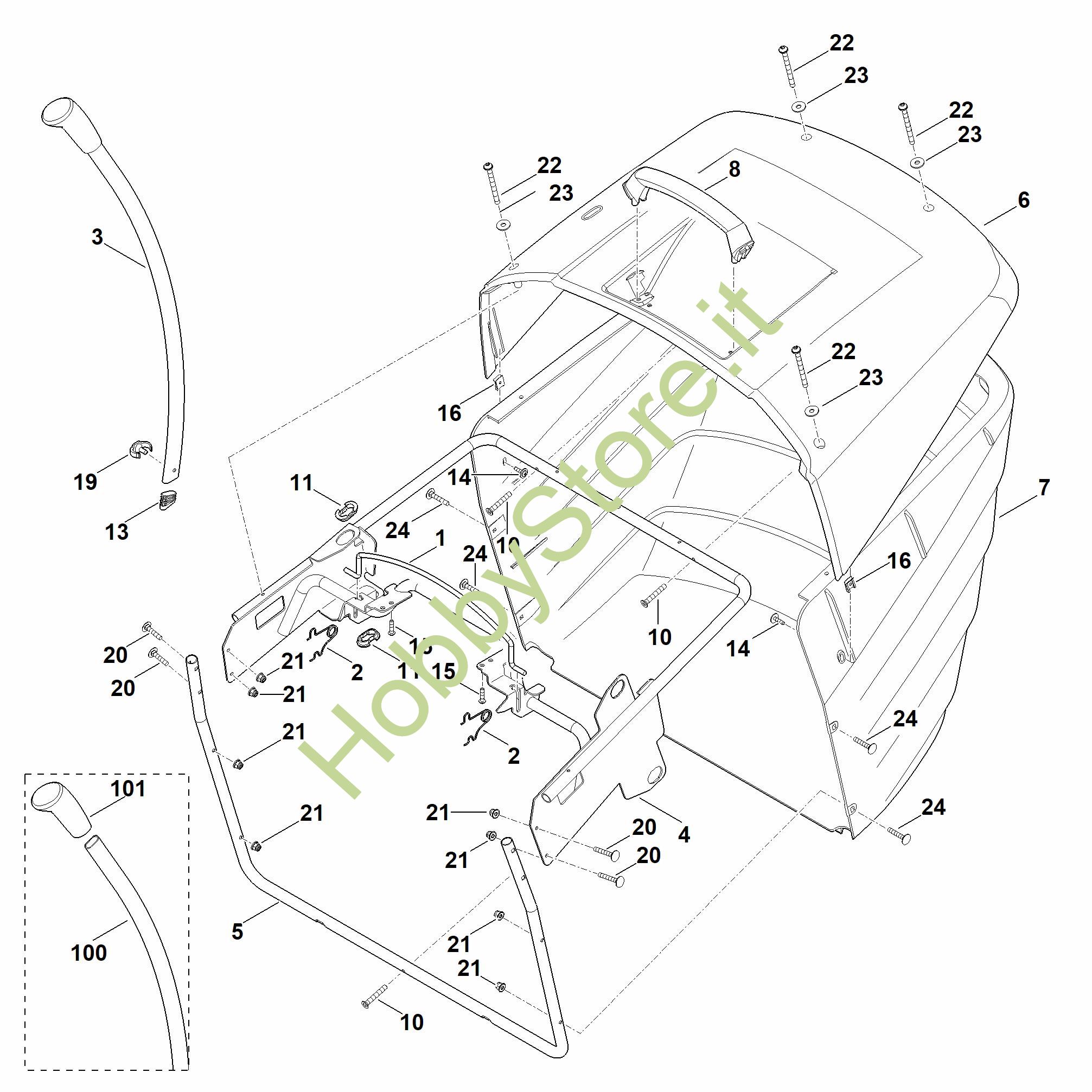 7 Parte inferiore del cesto di raccolta erba