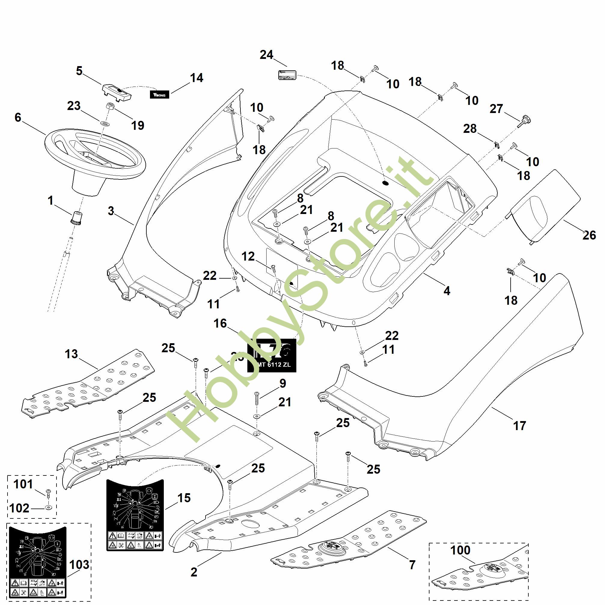 ricambio originale Copertura compl. MT MT 6112.1 ZL Viking Contiene anche i ricambi da n. 26 a 28