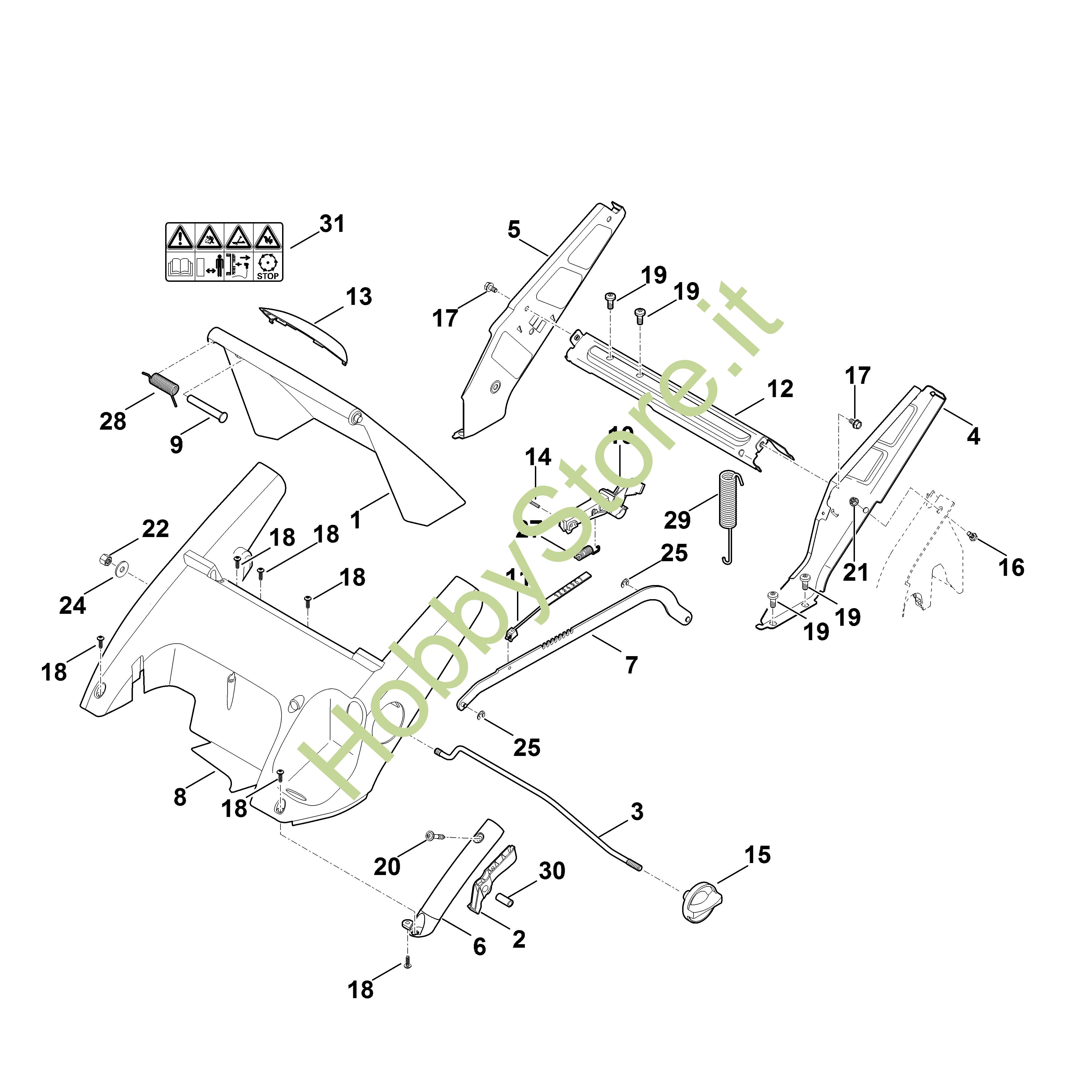 Ricambio Sportello compl. Tosaerba (RM) RM 545.0 VR STIHL Contiene anche i ricambi n. 13 e 31