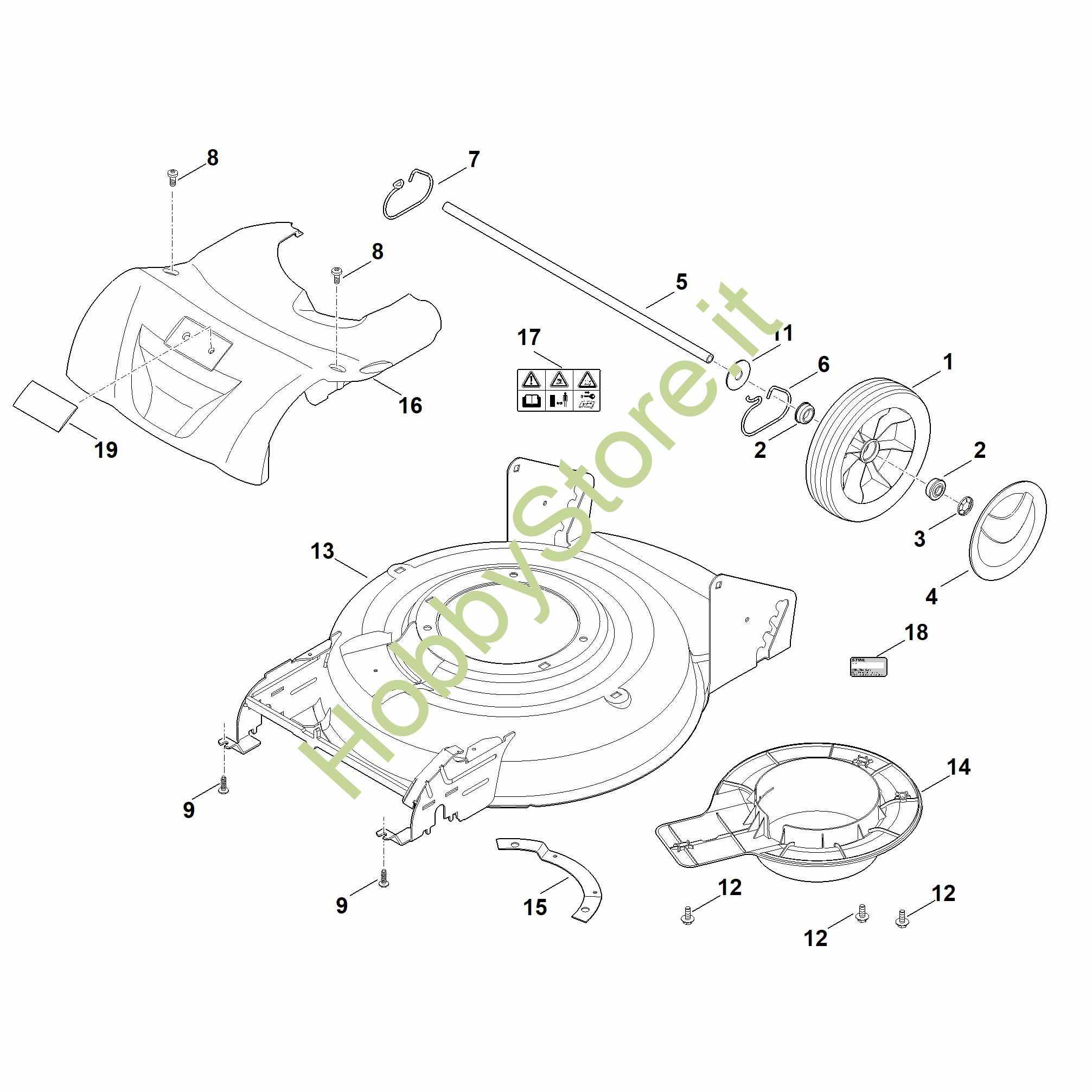 Ricambio Cofano di protezione Tosaerba a batteria (RMA) RMA 2.0 RP STIHL Contiene anche i ricambi n. 19