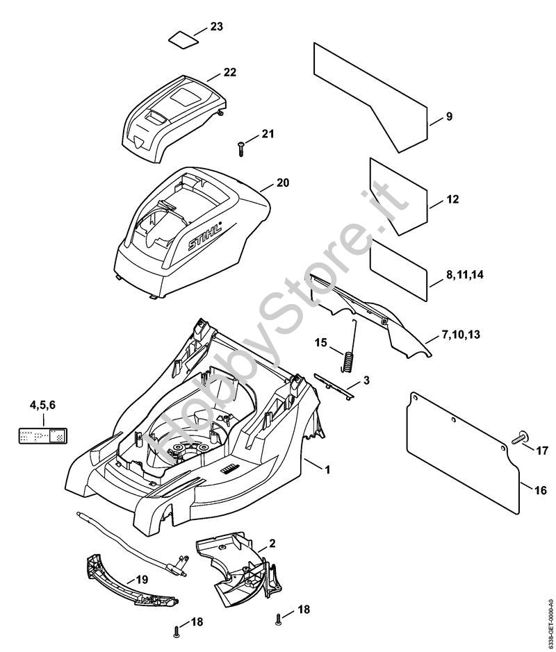 Ricambio Scocca Tosaerba a batteria (RMA) RMA 410 C STIHL Contiene anche i ricambi n. 2 e 3