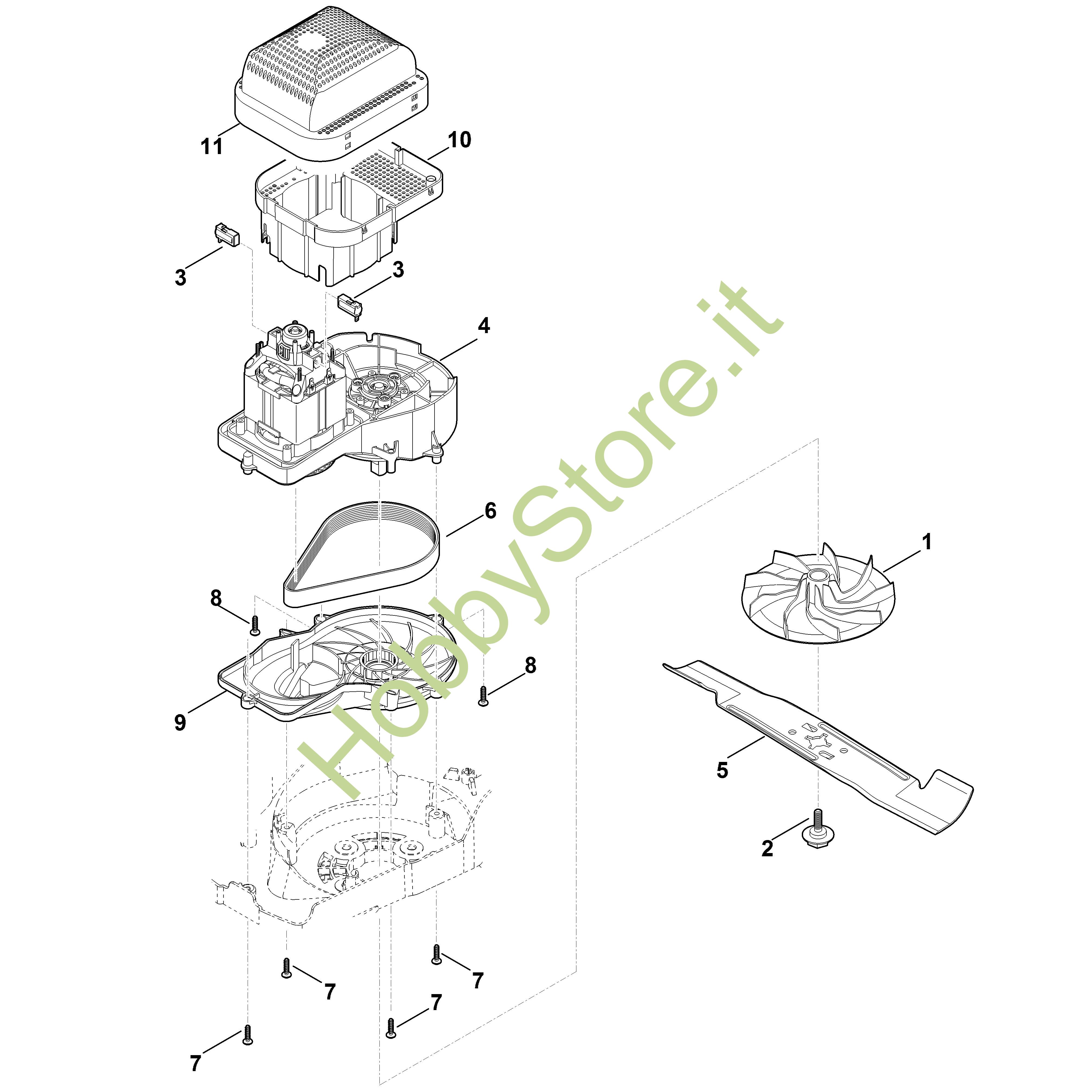 Ricambio Motore elettrico 230V (1,5kW) Rasaerba elettrici (RME) RME 443.0 C STIHL Contiene anche i ricambi nr. 3,6,8,9 a 11