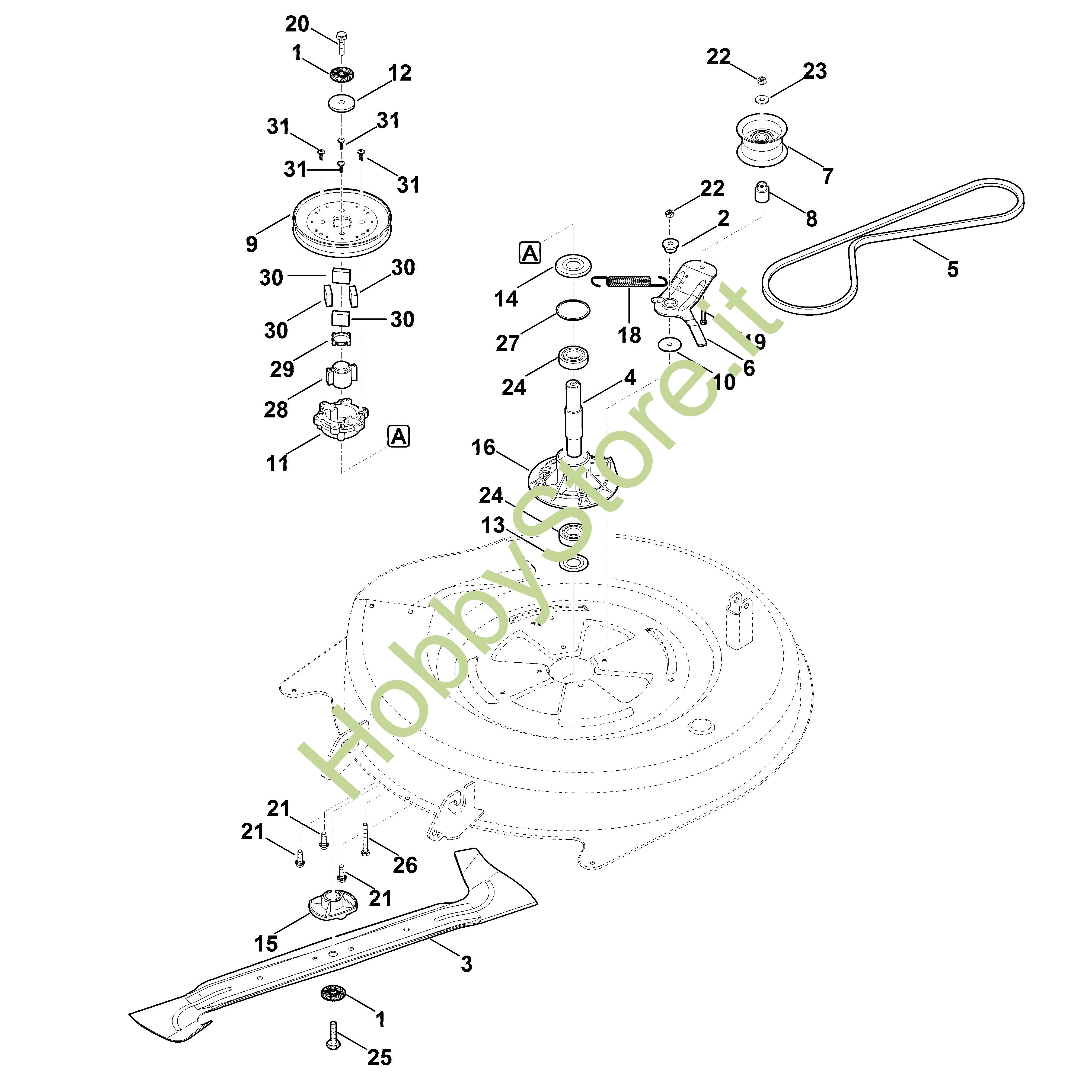 Ricambio Albero lama compl. RT RT 4082.0 STIHL Contiene anche i ricambi nr. 1,4,9,11,12,14,16,20,24,27 a 31