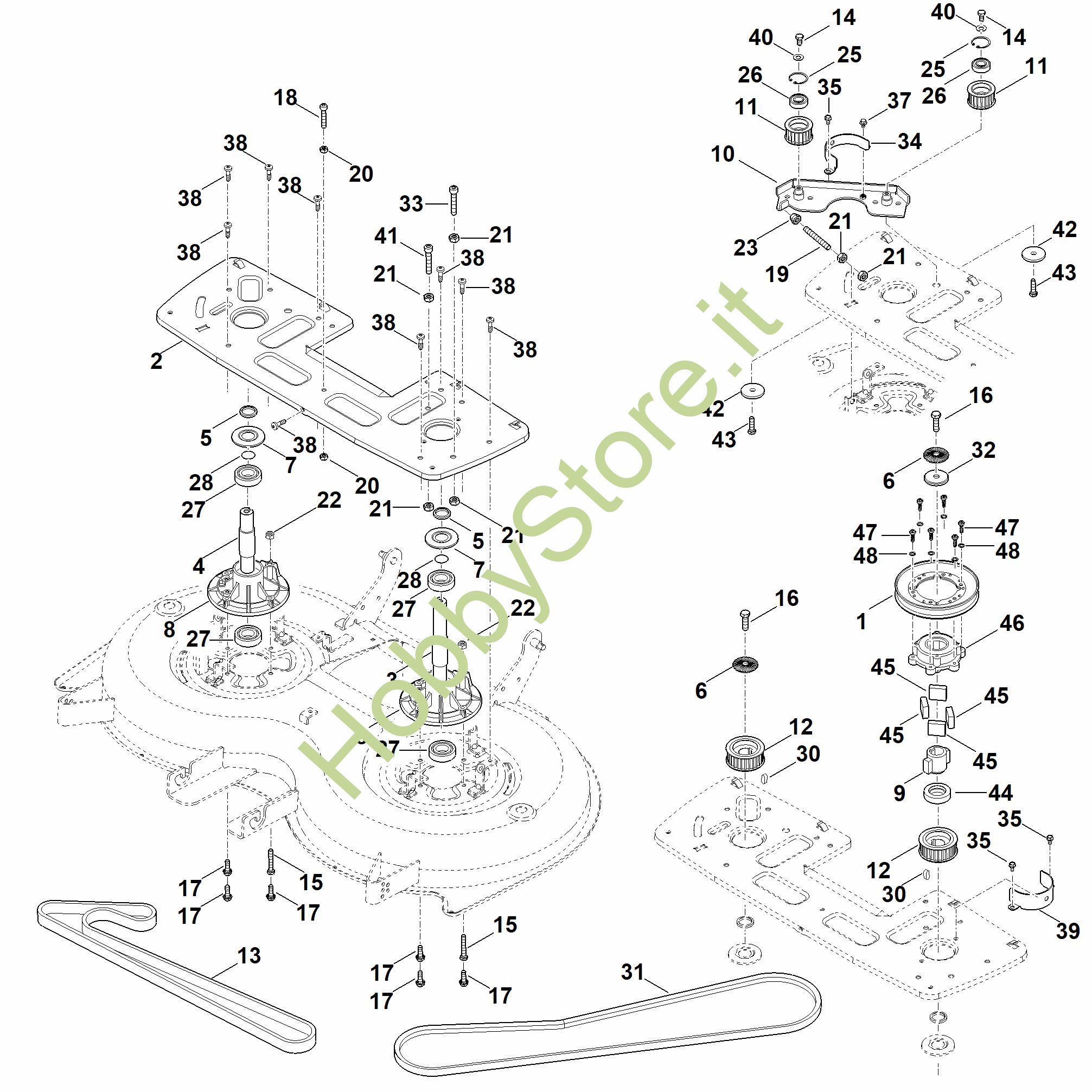 Ricambio Albero lama destro compl. RT RT 6112.1 ZL STIHL Contiene anche i ricambi nr. da 4 a 8,12,16,27,28,32