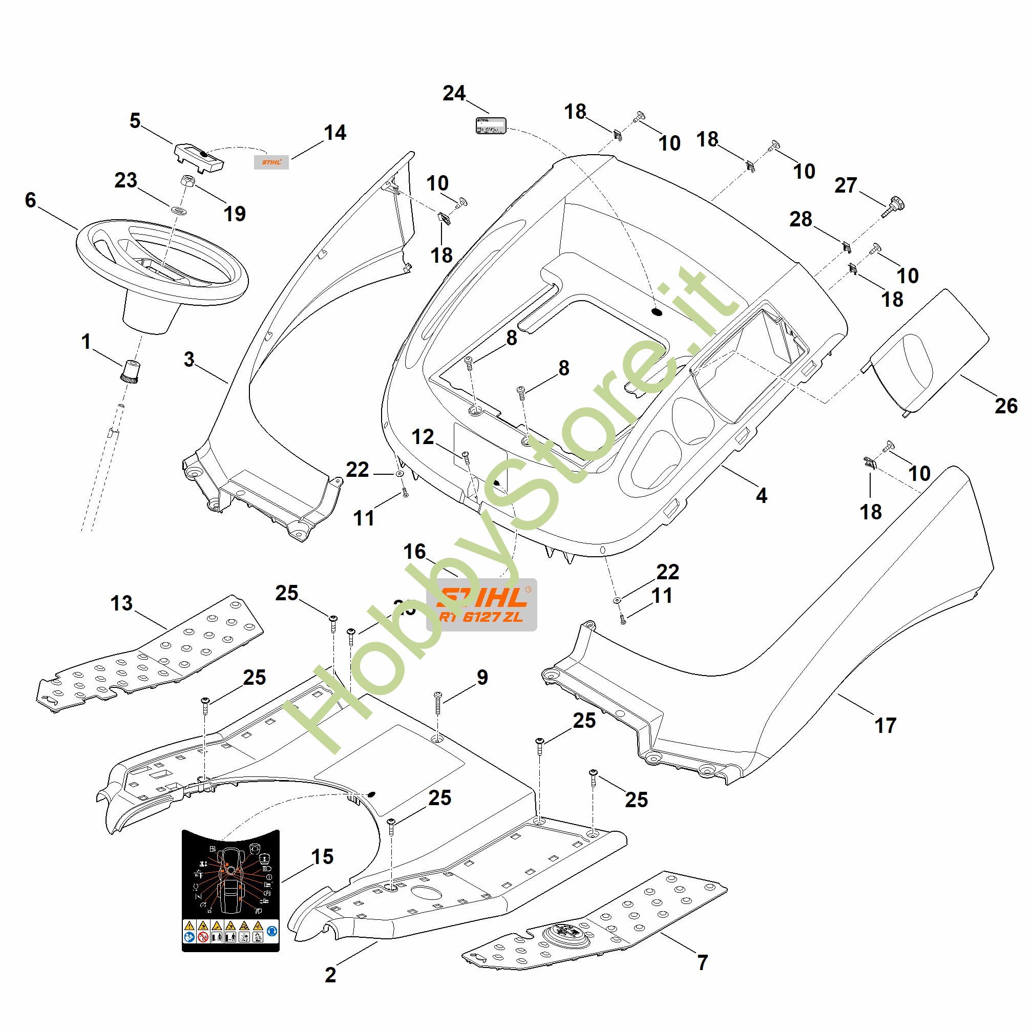 Ricambio Copertura compl. RT RT 6127.1 ZL STIHL Contiene anche i ricambi da n. 26 a 28