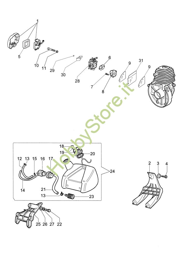 Ricambio Carburatore Serbatoio e filtro aria SO 2550 Scuotitore a pettine della marca Efco Richiede pezzi:1