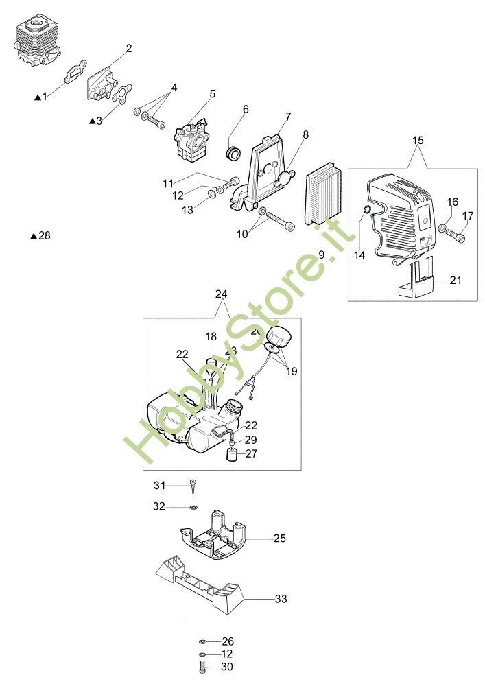 Ricambio Carburatore WYK-143B Serbatoio e filtro aria SO 5500 Ergo Scuotitore della marca Efco Richiede pezzi:1