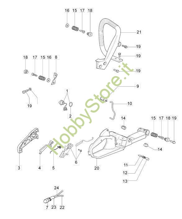 Scheda tecnica del serbatoio e dell'impugnatura per motosega GS 410 CX della Oleomac