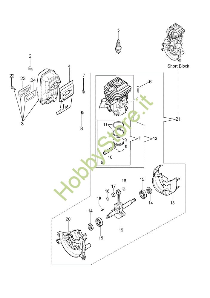 Ricambio Short block SN 5303120928 BT6-075-10/10, Motore SA 3000 Soffiatore della marca Efco Richiede pezzi:1