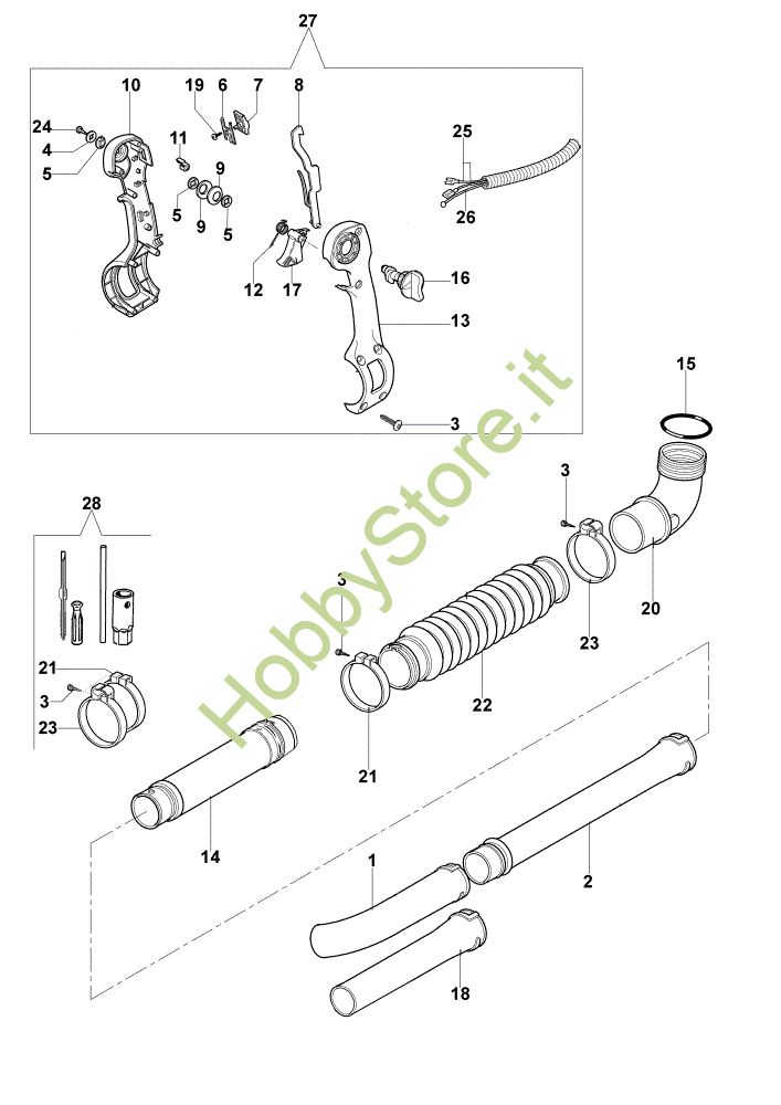 Ricambio Impugnatura completa Tubo di lancio BV 162 Soffiatore della marca Oleo-Mac Richiede pezzi:1