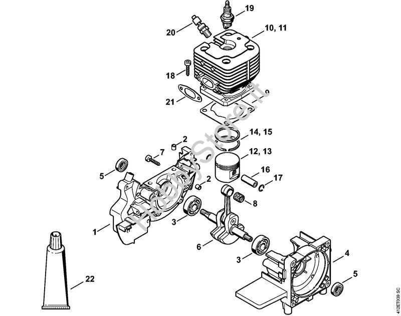 Ricambio Semi-carter albero a gomito Apparecchi speciali (PC, SP, MC) SP 400 STIHL Contiene anche i ricambi n. 3