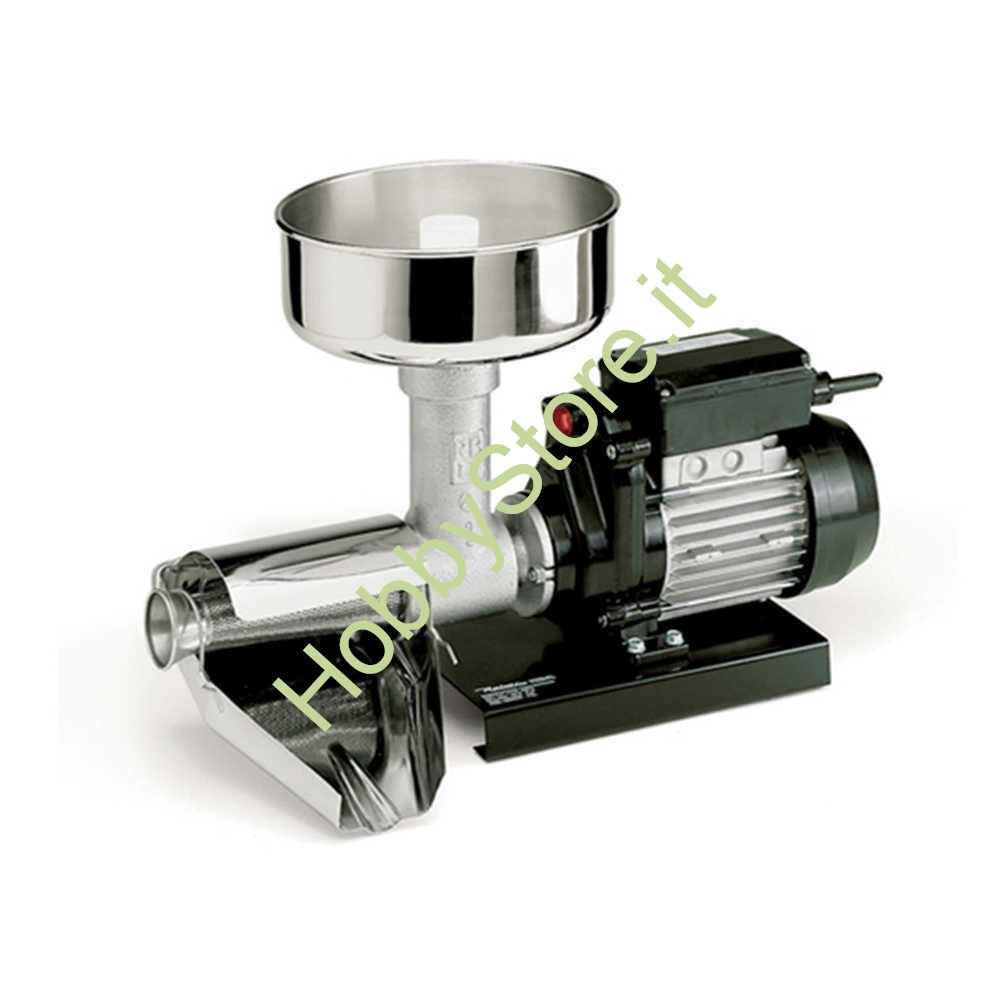 Spremipomodoro elettrici. Spremipomodoro di diverso tipo, dai modelli hobbistici a quelli professionali…..solo da HobbyStoreSpremipomodoro elettrico per la produzione di passata di pomodoro e marmellate di grande qualità in diverse misure, per l'utilizzo della piccola famiglia o della grande comunità.I nostri spremipomodori sono dotati di motori elettrici ad induzione a servizio continuo, riduttore assiale a bagno d'olio con ingranaggi metallici e in nylon. Passapomodoro in ghisa trattata a caldo per uso alimentare con polveri epossidiche. Perno di trasmissione in nylon e acciaio con molla per ottimizzare la spremitura; imbuto, sgocciolatoio, paraspruzzi e cono filtro in acciaio inox 18/10. Su tutti i modelli di spremipomodoro è inoltre possibile applicare una grattugia e un tritacarne disponibili come optional.SPREMIPOMODORO ELETTRICO DI GRANDE QUALITÀ REBER !!!!CARATTERISTICHE TECNICHE: