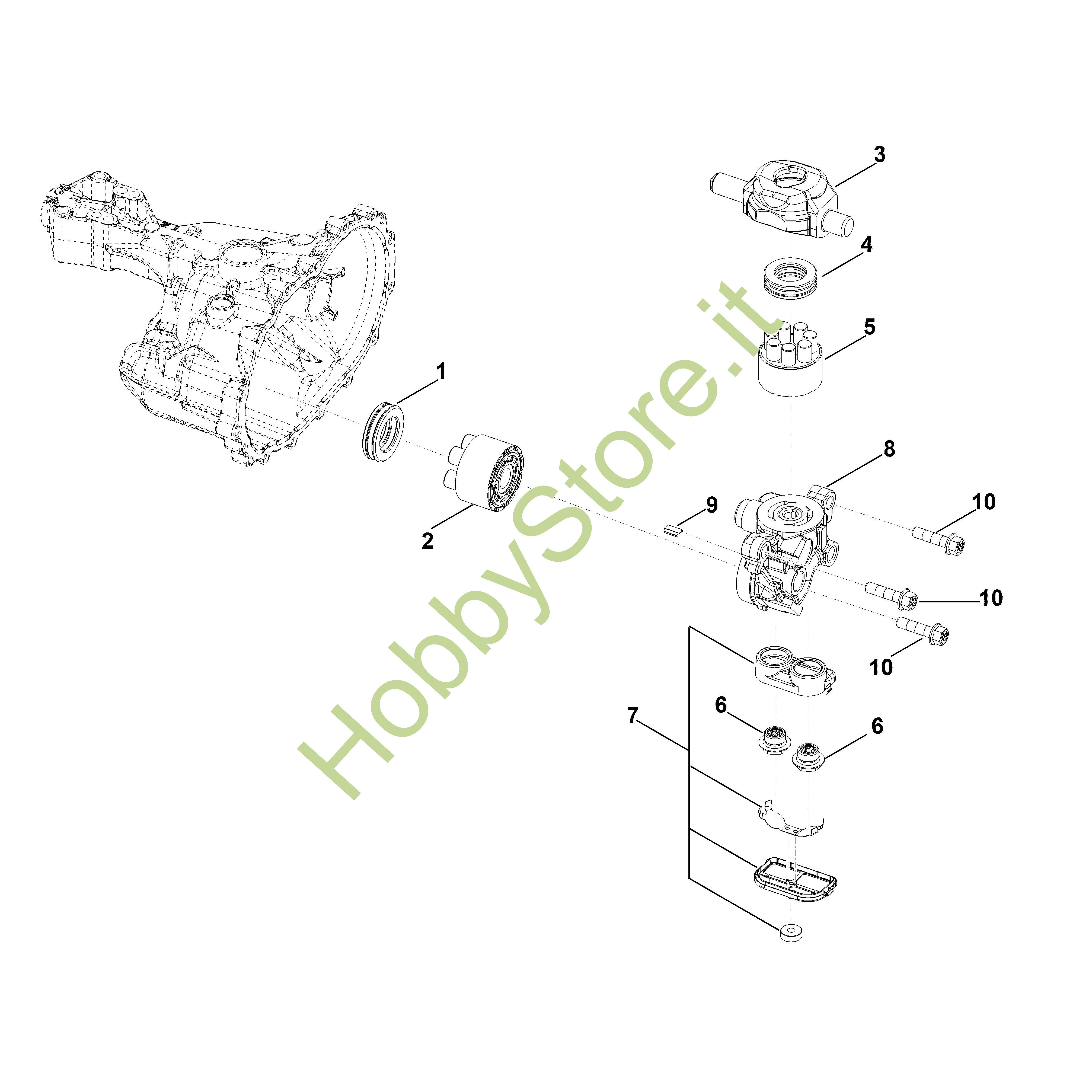 Ricambio Alloggiamento pompa Hydro-Gear T2 T2-CHBF-2X3C-1TX1 STIHL Contiene anche i ricambi nr. 6,7,9,10
