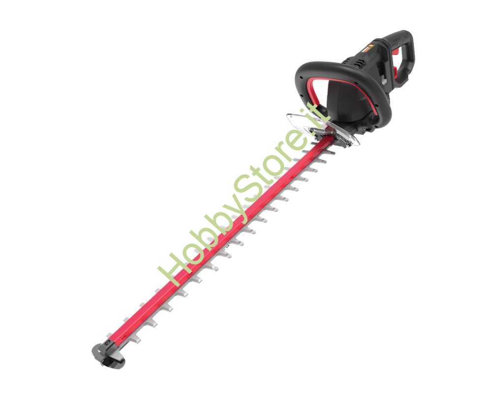 Silenzioso tosasiepi elettrico con potente motore da 40 Volt (senza batterie e caricabatterie), a basse vibrazioni. Impugnatura orientabile lunghezza taglio 61 cm.