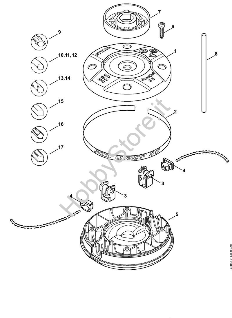 In caso di ordine di ricambi per il tuo prodotto FS Attrezzi di taglio Testa falciante DuroCut 5-2 della Stihl, per permettere al nostro staff di spedirti i ricambi corretti, inserire, nella pagina finale del carrello nel campo Note varie, anno della macchina e, se disponibile, il suo numero di matricola.