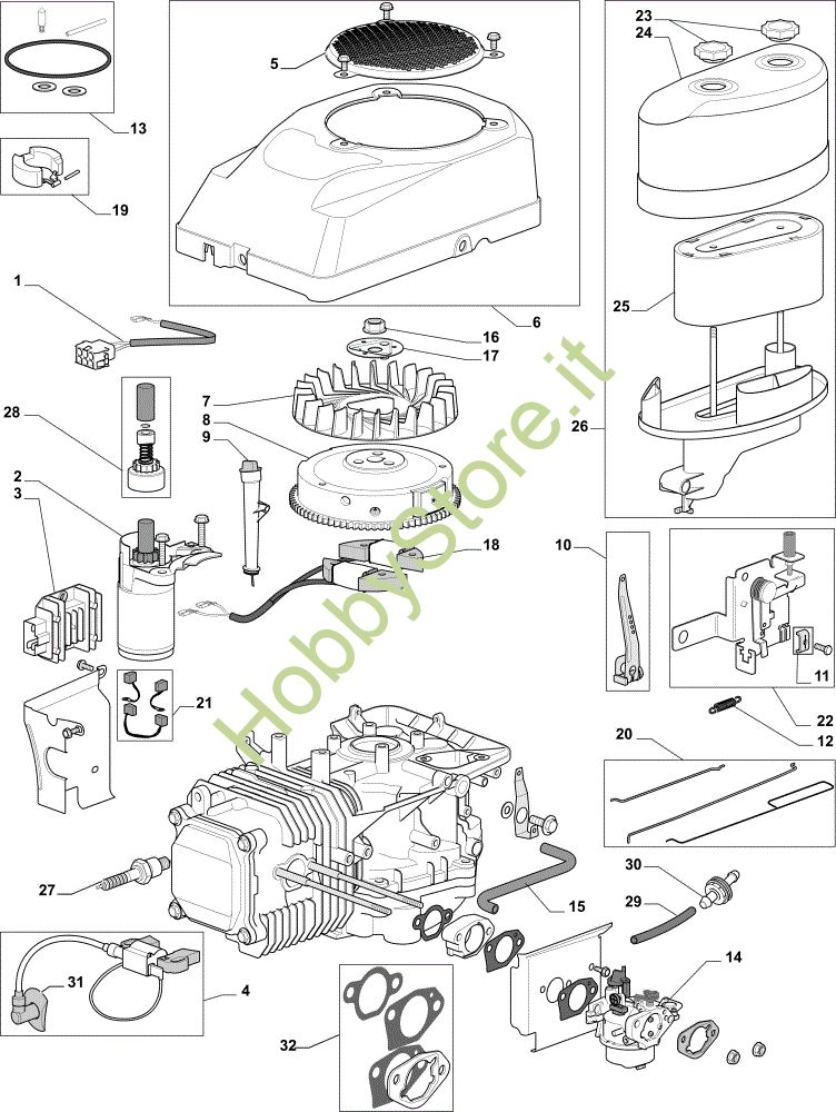 Avviamento, carburatore e filtro aria EF 91PLUS/14,5K M Cat.2011 Trattorino