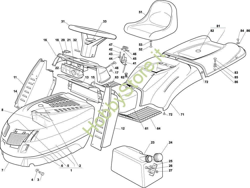 Ricambio Serbatoio Carrozzeria EF 102C/13,5M Cat.2003 Trattorino della marca Efco Richiede pezzi:1