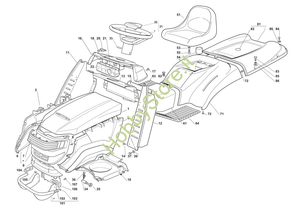 Ricambio Copertura Carrozzeria EF 102C/18,5H Cat.2010 Trattorino della marca Efco Richiede pezzi:1