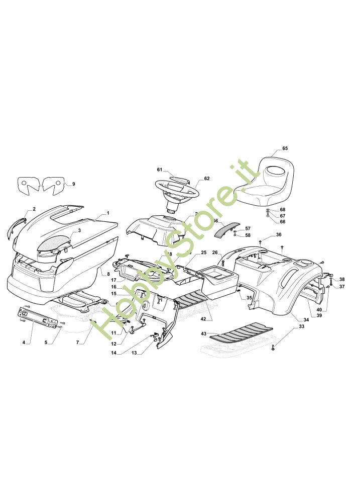 Ricambio Copertura Carrozzeria EF 108L/18,5 H Cat. 2020 Trattorino della marca Efco Richiede pezzi:1