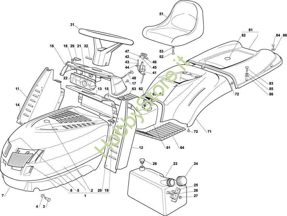 Ricambio Copertura Carrozzeria OM 122C/22H Cat.2001 Trattorino della marca Oleo-Mac Richiede pezzi:1