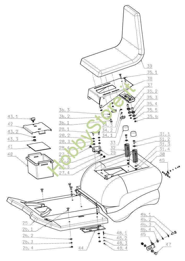 Ricambio Sedile Cofano (1/2) EF 104J/20H Cat.2006-2007 Trattorino della marca Efco Richiede pezzi:1