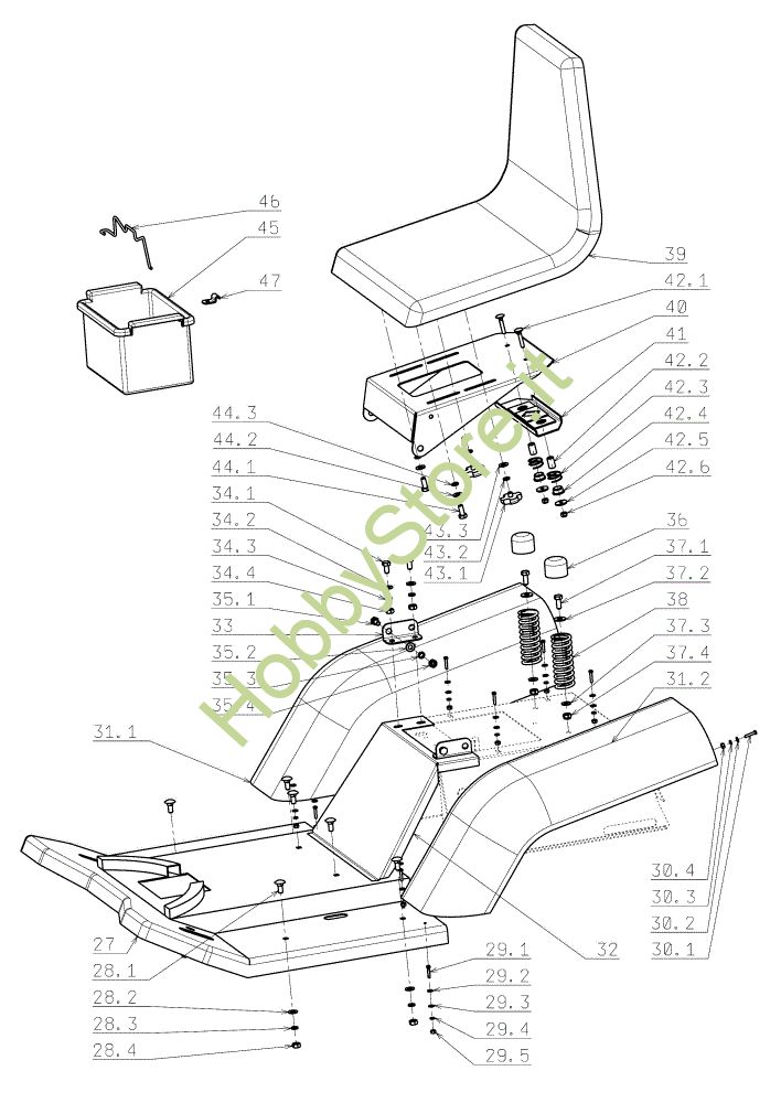 Ricambio Sedile Cofano (1/2) EF 104JH/16H Cat.2006-2007 Trattorino della marca Efco Richiede pezzi:1