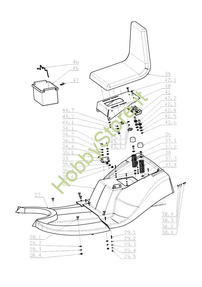 Ricambio Sedile Cofano (1/3) EF 105J/16H Cat.2008 Trattorino della marca Efco Richiede pezzi:1
