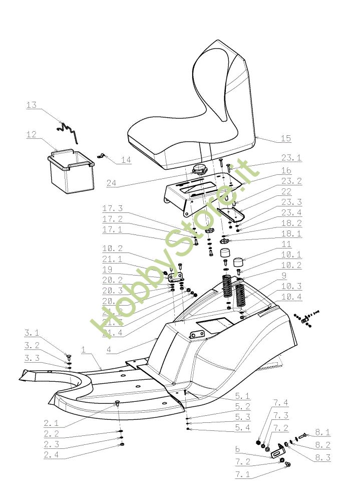 Ricambio Sedile Cofano (1/3) OM 105J/16H Cat.2009 Trattorino della marca Oleo-Mac Richiede pezzi:1