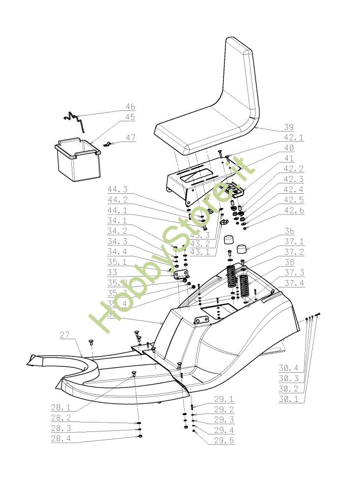 Ricambio Sedile Cofano (1/3) OM 105J/17,5H Cat.2008 Trattorino della marca Oleo-Mac Richiede pezzi:1