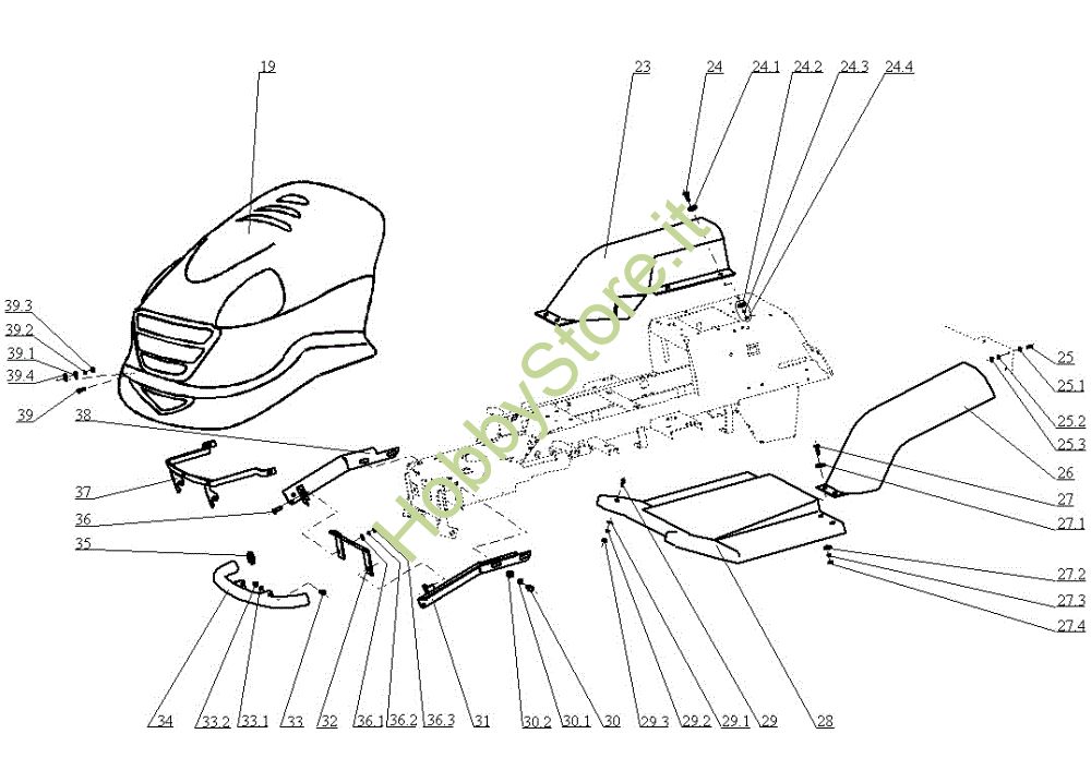 Ricambio Pannello Cofano (2/2) EF 104JH/16H Cat.2005 Trattorino della marca Efco Richiede pezzi:2