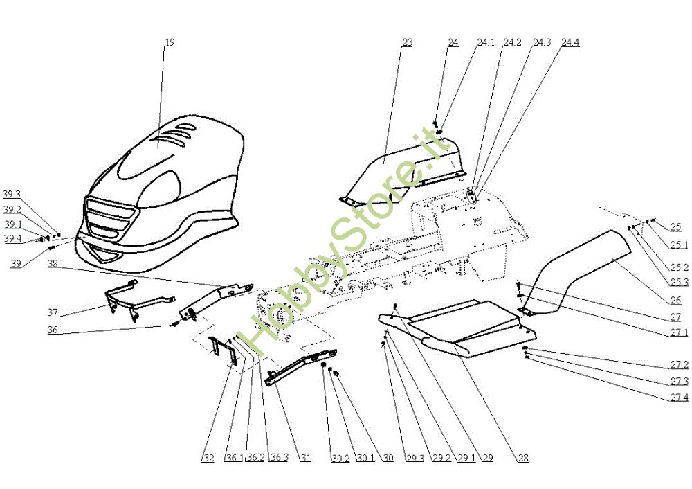 Ricambio Protezione Cofano (2/2) OM 104J/15,5H Cat.2005 Trattorino della marca Oleo-Mac Richiede pezzi:1
