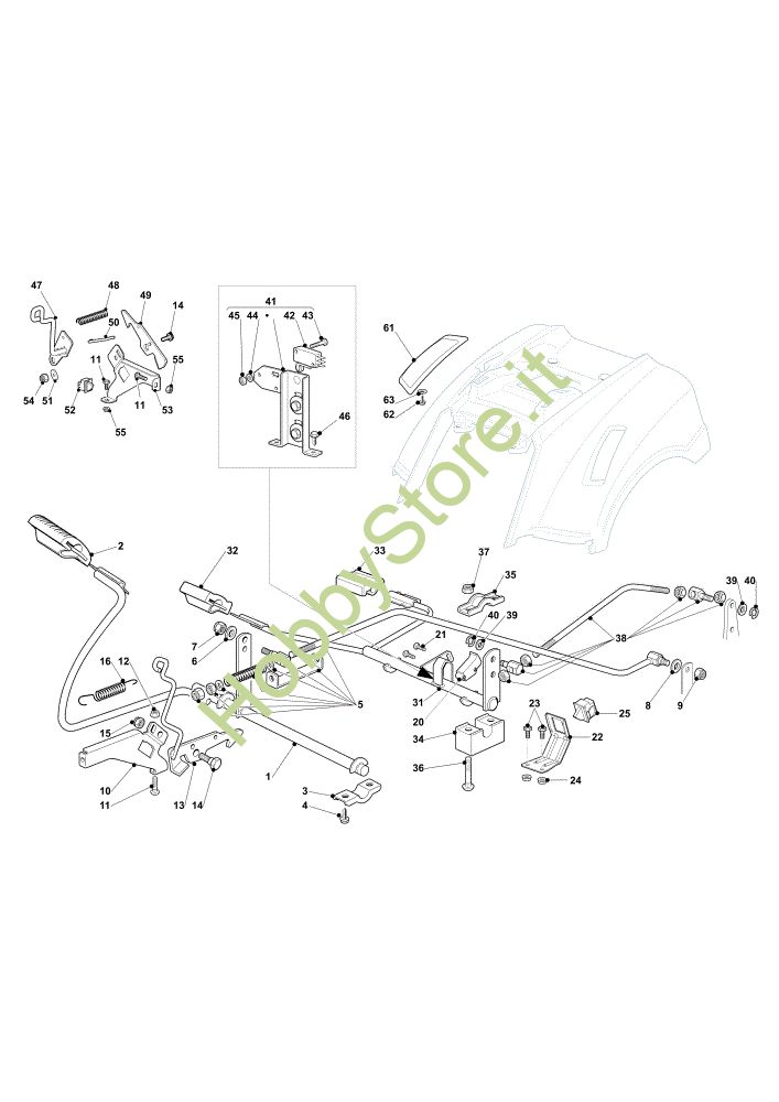 Ricambio Copertura (hydro) Comando freno e comando cambio EF 93/16,5 Cat.2019 Trattorino della marca Efco Richiede pezzi:1