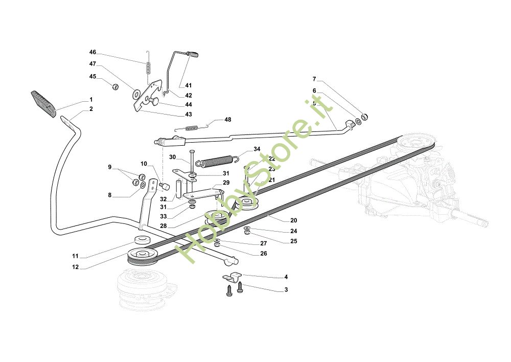 Ricambio Pedale Comando freno e comando cambio EF 98L/14,5 K H Cat. 2022 Trattorino della marca Efco Richiede pezzi:1