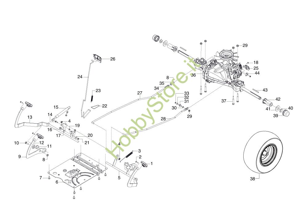 Ricambio Trasmissione Comando freno e trasmissione EF 95/16 H Trattorino della marca Efco Richiede pezzi:1