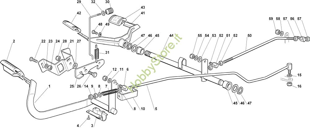 Ricambio Pedale Comando trasmissione e freno OM 102C/15,5H Cat.2006 Trattorino della marca Oleo-Mac Richiede pezzi:1