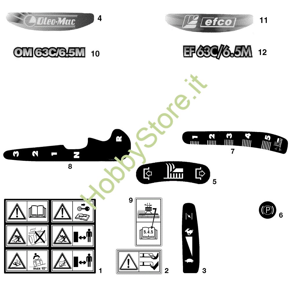 Ricambio Etichetta Etichette OM 63C/6,5M Cat. 2001/2002 Trattorino della marca Oleo-Mac Richiede pezzi:1