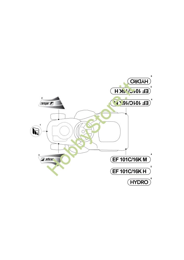 Ricambio Etichetta Etichette (2/2) EF 101C/16K H Cat.2011 Trattorino della marca Efco Richiede pezzi:1