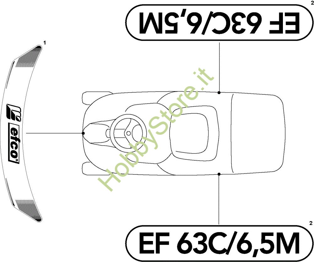 Ricambio Etichetta Etichette (2/2) EF 63C/6,5V Cat.2010 Trattorino della marca Efco Richiede pezzi:1