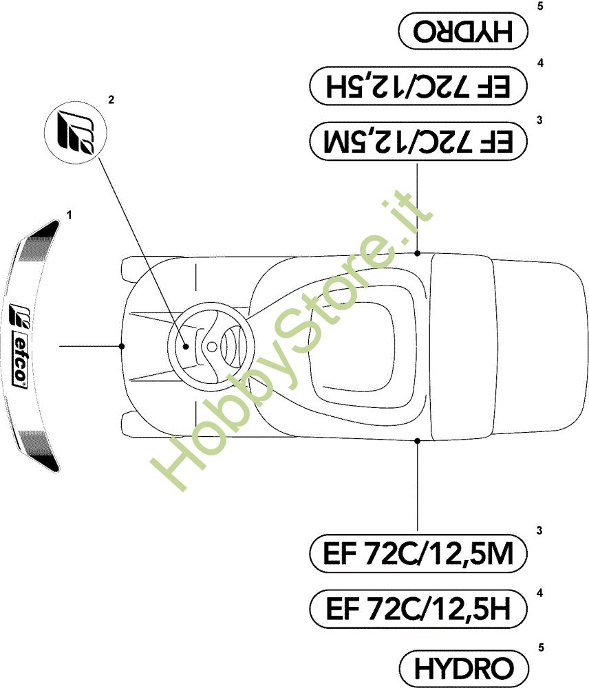Ricambio Etichetta Etichette (2/2) EF 72C/12,5H Cat.2008 Trattorino della marca Efco Richiede pezzi:1